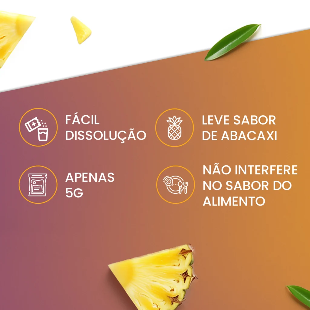 Modo de usar: Dissolva um sachê (5g) em aproximadamente 200mL de água e agite com auxílio de uma colher até total homogeneização. Pode ser dissolvido no leite e suco de frutas ou misturado no Whey Protein. Beba imediatamente após o preparo.
